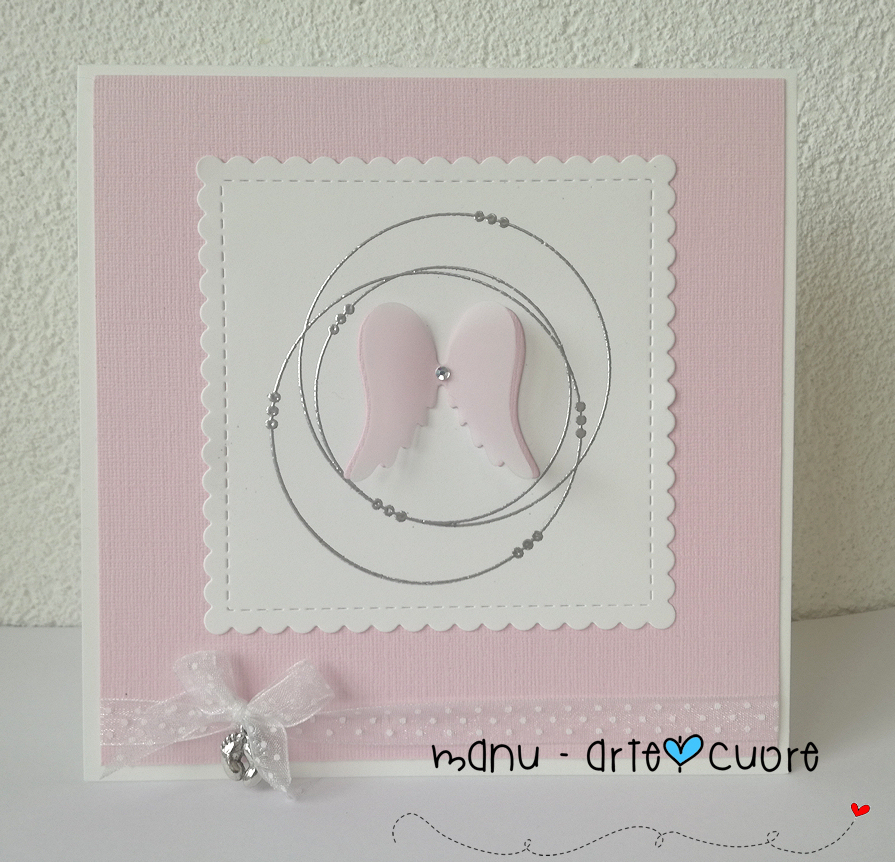 La card è quadrata e si apre da sotto. Mi piace farle così, perché se lasciate leggermente aperte, possono rimanere in piedi come un piccolo quadretto.